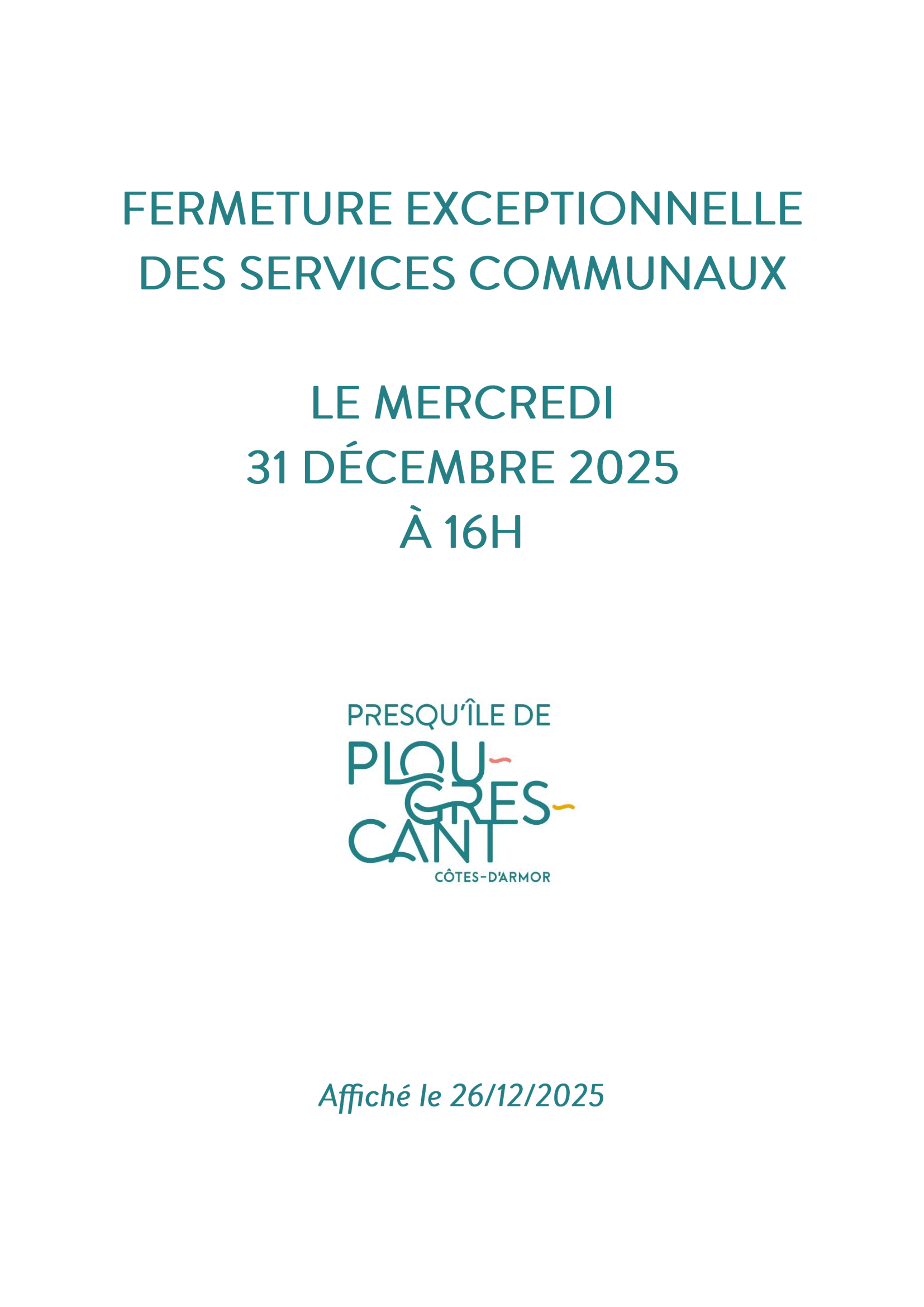Actualités MairieActualités Vie QuotidiennePage Accueil ⚠️ Fermeture exceptionnelle des services communaux 26 décembre 2025 Communications