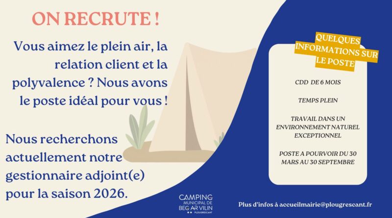 Venez rejoindre l’équipe du camping municipal de Plougrescant pour la saison 2026 !