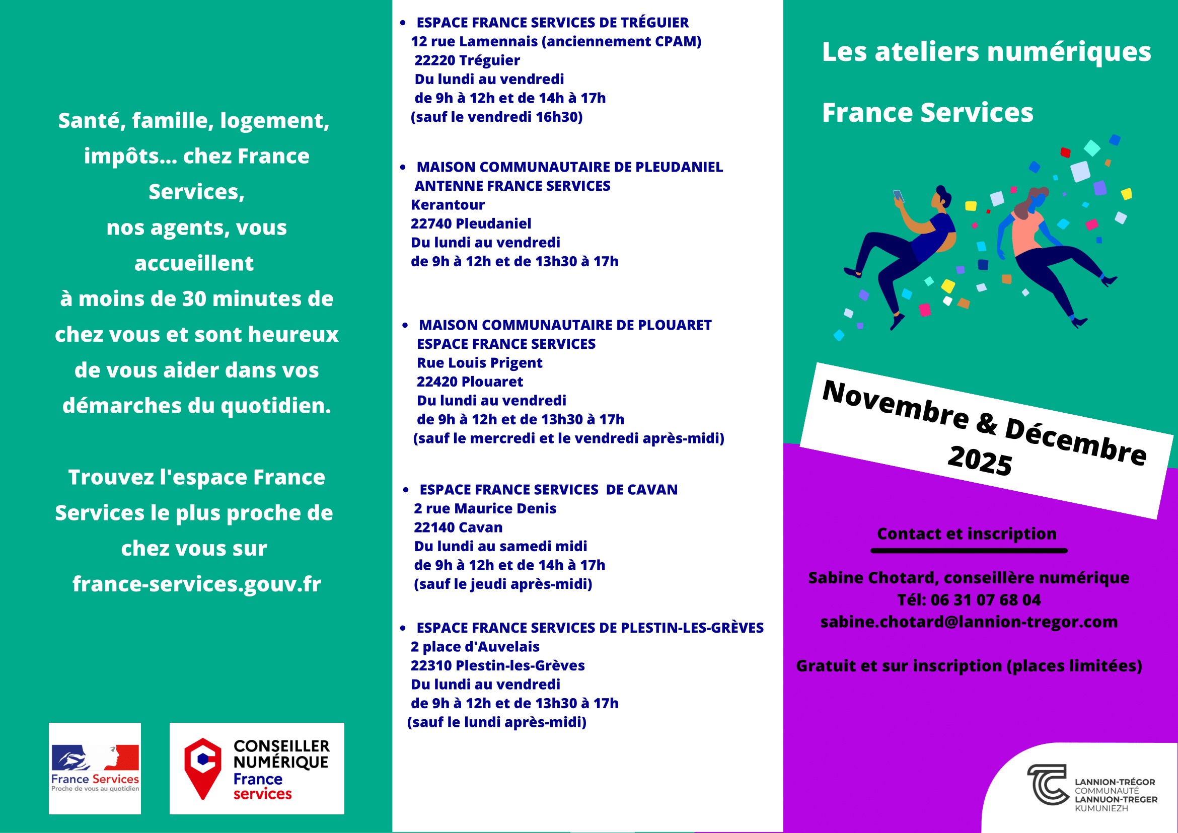 Date Nov 24 2025 Heure 9 h 30 min - 11 h 00 min đź’» Atelier France Services – TrĂ©guier Partagez cet Ă©vĂ©nement + Ajouter Ă mon Agenda Google + iCal / Outlook export