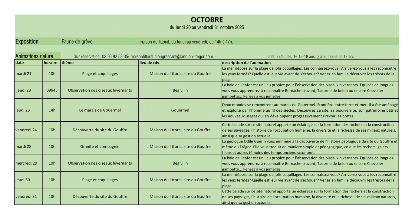 Actualités TourismeActualités Vie Culturelle et AssociativePage Accueil Programme des animations à la Maison du Littoral 15 octobre 2025 Communications