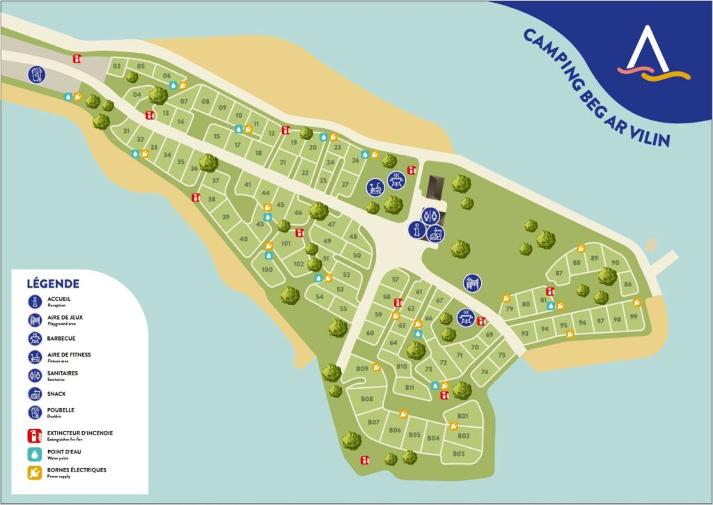 Les emplacements sont équipés de prises électriques européennes . Des adaptateurs pour prises européennes sont en vente à l’accueil du camping.